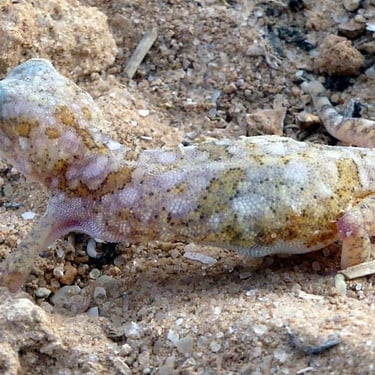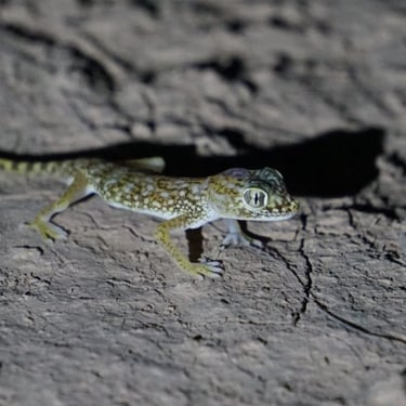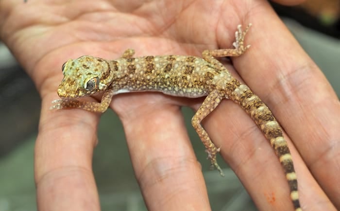 Common species include the Mediterranean House Gecko (Hemidactylus turcicus) and the Egyptian Fan-footed Gecko (Ptyodactylus hasselquistii).